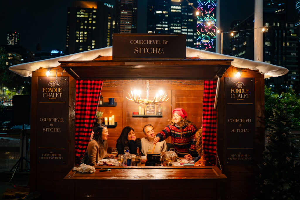 ...escape with your Friends and Family into an Alpine village, dine in a private wooden chalet and share an authentic French melted cheese ritual. Savoyard Fondue or Raclette, paired with mulled wine and melted chocolate around a crackling fire pit. Your French apres-ski experience, right at Fed Square.